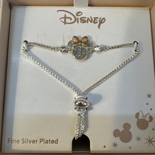 New Disney Minnie Mouse Crystal Slider Bracelet Fine Silver Plated w/ Box