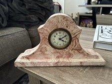 New Haven Alabaster Pink Mantle Clock 10” X 6”. Art Deco Needs Repair- Wind Up