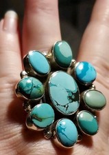New HUGE Sterling Silver & Kingman Turquoise Adjustable Ring Size 9.5 additional preview