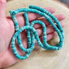 New Mexico Blue turquoise beads Heishi Native American 2 strands 15" 57g Natural measures Each strand is 15.25 in L beads are about 6.3 mm THE BEADS THAT YOU SEE IN THE PICTURES IS WHAT YOU GET FEEL FREE TO ZOOM IN these are natural beads with natural inclusions I received a collection of beads from an estate that had allot of Navajo jewelry and Paintings from New Mexico I will be listing small lots for the next few days Fine genuine beads real turquoise beads LETS MAKE A DEAL SEND US AN OFFER We will consider any reasonable offers questions welcomed