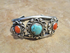 NEW MEXICO ESTATE....OLD PAWN Sterling Silver Turquoise / Coral DESIGN Bracelet