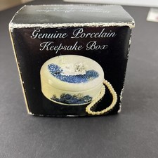 New Old Stock Trinket box Keepsake New in box Taiwan Blue White Ceramic