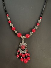 Beautiful new red coral beads Himalayan Tibetan necklace.