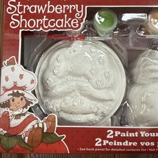 New in box Strawberry shortcake 2 paint your own figurines with paint and brushes Damage to bottom corner of box. DOES NOT affect contents.