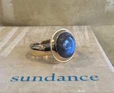 This NWT Sundance Catalog ring is a beautiful handcrafted piece of artisan jewelry. It features a gold vermeil band with a round Cabuchon labradorite as the main stone set in a vermeil bezel. The stone is about 3/8 inch in diameter This is a new Sundance frame, but will be packaged in a plain box This measures as a size 8 on the mandrel.