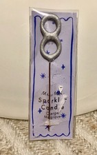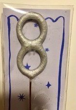 This is a sparkler candle in the number 8. Sparkles on top of cake.