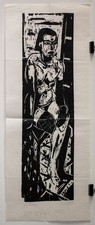 New Year's Eve Female Nude illegible signed woodcut on Japan paper 1989