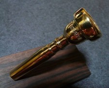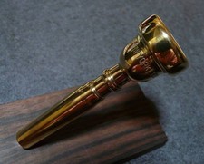 This is a New York Bach 10-1/2DW trumpet mouthpiece, featuring a 99% gold-plated finish. This is a rare model, perfect for collectors or professional musicians seeking a high-quality accessory. C:Throat Size: 24.