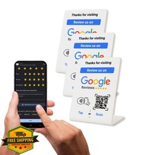 NFC Tap Google Review Stand White 3-Pack QR Code Scan