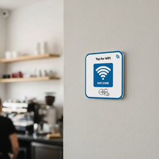 Technology: NFC (Near Field Communication). Provide fast, hassle-free WiFi access. WiFi network credentials are shared automatically. Perfect for counters, tables, lounges, or reception areas. Offices, coworking spaces, and reception areas.