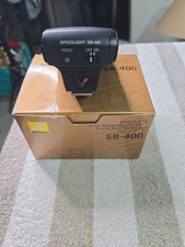perfect condition on original box please see video and photos The Nikon Speedlight SB-400 flash is a professional shoe mount flash designed for Nikon digital cameras. This strobe light features TTL technology for automatic exposure control and a hot shoe mount interface for easy attachment to the camera. Made by Nikon, this model is known for its quality and reliability, making it a popular choice among photographers. The original box is included, ensuring the flash is well-protected and preserved for years to come. Ideal for portrait, wedding, and event photography, this Nikon flash is a valuable accessory for any photographer looking to enhance their lighting setups.
