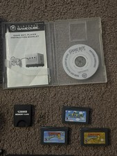 This lot includes: -Nintendo GameCube black console (very good condition) with a controller and cables (not shown) -Game Boy Player adapter (plays gameboy , gameboy color, and gameboy advance games) -disc w/manual (no scratches) -128 mb memory card - donkey Kong country 2 and 3 for GBA (connects to adapter and works great) -super Mario for GBA (connects to adapter and works great) - all 8 GameCube games come complete with manual and disc (very good condition).