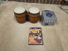 Nintendo GameCube Console Silver w/ Donkey Konga Game & DK Bongos Compatible