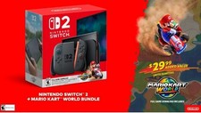 The Nintendo Switch 2 + Mario Kart World Bundle is a complete gaming package from Nintendo, featuring the latest model of the popular Nintendo Switch console along with the Mario Kart World game. This bundle offers an immersive gaming experience with new features and exciting gameplay, making it a must-have for fans of Nintendo products. Enjoy hours of entertainment with this high-quality gaming set from the iconic video game brand.