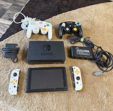 This console includes the Console, custom-painted Animal Crossing Joycons, the Switch Dock, an AC Adapter for charging, Two Gamecube Controllers, One Gamecube Controller Adapter, and games installed as seen in the pictures. *All games are pre-installed/virtual except for The Legend of Zelda: Breath of the Wild, which is a physical game cartridge already included inside of the switch.