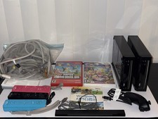 Nintendo Wii Console Black x2 Power Chord & AV Cable x2 Wii Controller x3 Blue Pink Black Super Mario Bros Mario Party 9 Wii Sports & Resorts Sensor Nunchuck User Manual TESTED WORKING
