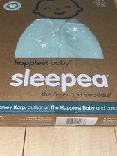 The Happiest Baby Snoo Sack Looks like a light blue mint kinda color to me size Medium (2-4months) is a cozy and stylish swaddle made from organic cotton in a blue /green color with star design. Perfect for keeping your little one snug and secure while promoting a natural sleep environment. This unisex product is designed by Happiest Baby, known for their commitment to creating high-quality and safe baby products. Ideal for parents looking for a comfortable and adorable swaddle for their baby's bedtime routine. All sales final