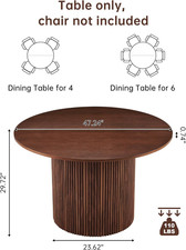 Manufacturer NORDICANA. Table Design Dining Table. Top Color Walnut. Base Color Walnut. Color Walnut Color. Furniture Finish Walnut. Is Stain Resistant No. The spacious circular surface, crafted from engineered wood, showcases a walnut finish with natural grain variations.