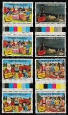30c Norfolk Island Pine Tree and Restored Convicts' Settlement, 42c Santa Claus and Children Opening Packages, 58c Santa Children Gifts in Fire Engine and 63c Meal 1987 Children Gutter Pairs.