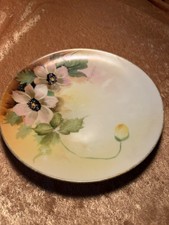 The Noritake MORIMURA Nippon 6.25" Hand Painted Floral Gold Rim Plate is a beautiful and unique dessert plate featuring intricate floral patterns in pink, white, black, and green. antique original piece exudes an Art Nouveau style and is made of high-quality porcelain. The gold rim shows some wear, but still adds a touch of elegance.