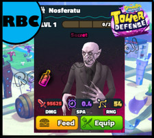 This is a Spongebob Tower Defense unit - a NOSFERATU. After your purchase, send me your user or add it in the personalize section - I will then use this to mailbox or trade the item to you. Due to the fact that I live on west coast the possible time difference may mean a delay in the delivery of items. I may be offline at the time of purchase but I will deliver as soon as I come back online. If you would like to get quick delivery contact me before buying. Please note that I'll record the transaction as proof of delivery. If you have any questions, please ask as all sales are final and there are no returns.
