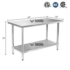 NSF Stainless Steel Table, Metal Prep & Work Table with Adjustable Undershelf...