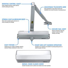 HEAVY DUTY - ANSI/BHMA Certified A156.4 Grade 1 tested over 2 million cycles ADJUSTABLE - Fully adjustable power spring Size 1-6 to fit all type of door weight. Comparable to Norton 1600 Series. ADJUSTABLE - Fully adjustable power spring Size 1-6 to fit all type of door weight.