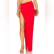 NWT Isolde Maxi Skirt in Red Size XL- Revolve | Lovers & Friends Color: Red Size: XL GIMME ALL THE DEETS: Self & Lining: 100% polyester Hand wash Fully lined Hidden side zipper closure Gold-tone starfish hardware accent at hip Crepe fabric with high slit Item not sold as a set Waist to shortest hem measures approx 6" and to longest hem approx 45" in length Made in China Style No. LOVF-WQ955 Manufacturer Style No. ACQ717 U24 **NEW WITH TAGS. Never used. In perfect condition.**