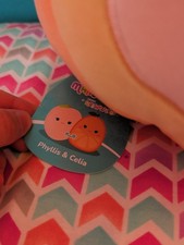 The NWT Squishmallows Flip A Mallow PHYLLIS Peach & CELIA Orange 12 Inch Plush is a colorful and fun summer-themed stuffed animal toy. This 2-in-1 plush features a peach character from the Flip A Mallow series, perfect for kids of various age levels. With a small size of 6-14 inches, it is easy to handle and cuddle. The washable feature makes it a great companion for playtime and naptime, ensuring easy care and longevity. Ideal for children and collectors alike, this Squishmallow is bound to bring joy and smiles.