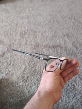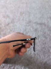 These are metal-framed eyeglasses featuring a sleek, modern design. The frames are lightweight and have a distinctive Oakley logo on the arms.