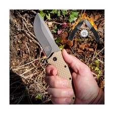 Off-Grid Knives - Rapid Fire Coyote, Large Assisted EDC, Hard Use Construction, Camping and Survival, Cryogenic D2 Blade Steel, Titanium Nitride Coating with G10 Scales, Deep Pocket Carry. Handle Material: Coyote G10.