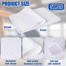 Oil Absorbent Pads - High Absorbency Microfiber Polypropylene Absorbing Pads, Oil Spill Mat for Oil-Based & Water-Based Fluids, Gray, 13" x 10" (50 White, 13" x 10").