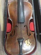 Please note: the violin neck comes loose from the body. Antique Hopf violin. Will need some repairs. See detailed photos. Perfling looks excellent. No markings on inside. Has corner blocking in lower corners but I can't see upper corners. Includes case and bow.