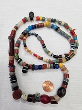 Large strand ofmixed African trade beads collected in Ghana, displaying a wide range of colors and bead types. The strand reflects the diverse trade bead traditions found in West African markets.