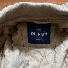 Old Navy Men's Beige Bomber Jacket Button Accents Stand-Up Collar Size M