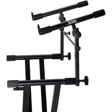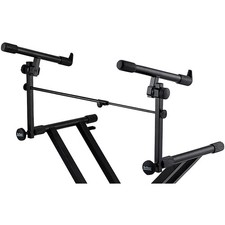 The sturdy On-Stage Stands KSA7500 keyboard X-stand add-on 2nd tier lets you double your keyboard space without springing for another stand or a more elaborate system. Tilt adjustment helps you put your board right where you want it. It can be inserted into most X-style keyboard stands with round or square tubing, and uses a tightening knob with an internal-tubing mechanism to secure the 2nd tier. A midpoint clutch featuring two disks with 36 interlocking teeth allows the user to tilt the second tier to any position without worrying about slippage. The clutch is made with die-cast zinc for added strength.