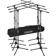 Complete package includes 6 On-Stage tripod microphone stands with booms and a mic stand bag. (Mic clips not included.).