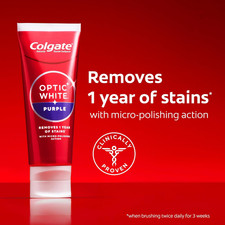 ANTICAVITY TOOTHPASTE: Provides protection against cavities with fluoride. WHAT’S INCLUDED: Three 3.8 oz tubes of Colgate Optic White Purple Toothpaste. STAIN REMOVAL: Removes 5X more surface stains with micro-polishing action ( vs. ordinary, non-whitening toothpaste after 2 weeks of continued use).