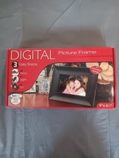 The OptiPix SP70EWB 7" Digital Picture Frame is a sleek and modern device that allows you to display your favorite photos in a 7-inch TFT LCD screen with a 16:9 aspect ratio. The black color of the frame adds a touch of elegance to any room. This model is wall-mountable, providing flexibility in how you display your memories. Additionally, it is compatible with various external memory cards such as SD, MMC,. xD-Picture Card, and Memory Stick, making it easy to transfer and view your images. open box but brand new. comes with charger and stand.
