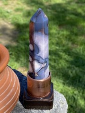 Materials include copper pipe, atomized metal powders, Quartz sand, blue snowflake flower agate scepter point, black iron oxide, fine metal shavings 1.5 inches wide X 4.75 inches tall