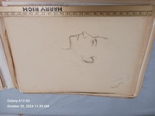 ORIGINAL Art Pencil Or Charcoal Sketches Vintage Portrait 24 X 17