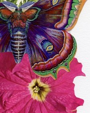 Original Collage Art 8x10 with Vintage Moth and Pink Flowers
