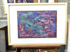 Original expressionist pastel drawing "..MINOTAUR" dog - framed contemporary art