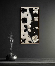 A dance of opposites - light and shadow, softness and strength. This black-and-white painting explores the truth of duality through mirrored florals: white flowers growing from darkness, black blossoms unfolding from light.