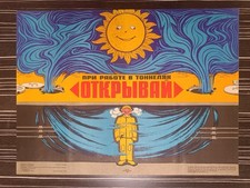 ORIGINAL SOVIET SAFETY POSTER USSR TUNNEL WORK VENTILATION OPEN VINTAGE 1983