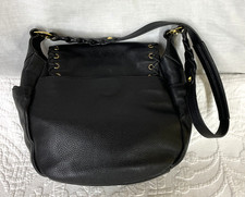 orYany Black Pebbled Leather Shoulderbag with Whipstitch Detailing