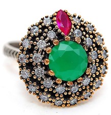 Ottoman Empire Style 5CT Treated Emerald 925 Sterling Silver Ring Sz 7 HB2-6 additional preview