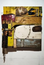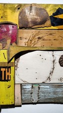 Mixed Media Assemblage Art Wood Metal Chain Unframed Original OOAK