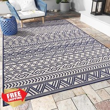 Outdoor Rug Carpet 6x9 ft Flatweave Navy Non Slip Patio Deck