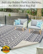 These outdoor rugs have strong grip to the ground, not easy to be blown over by the wind. It's alao a great choice for areas with heavy foot traffic. UV Protected outside rugs: This polypropylene rug is designed to be suitable and durable in all weather conditions.